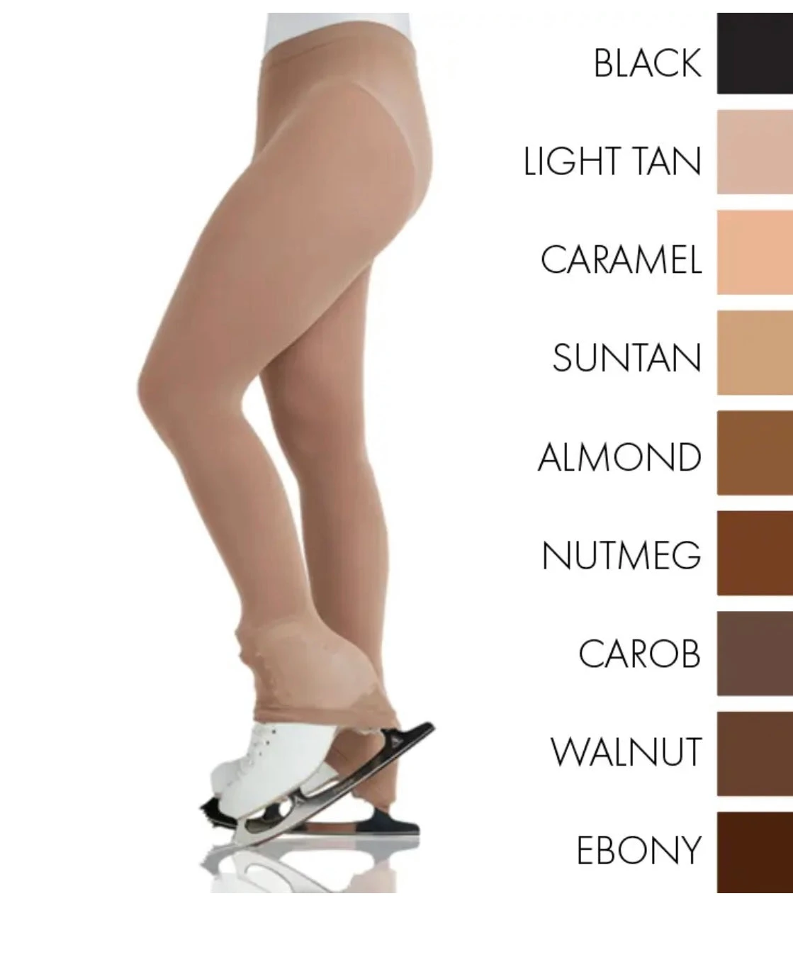 Footless and heel cover skating tights, Opaque, 80 denier, Comfort knitted waistband with Lycra Soft, Dye to match gusset heel cover with silicone band