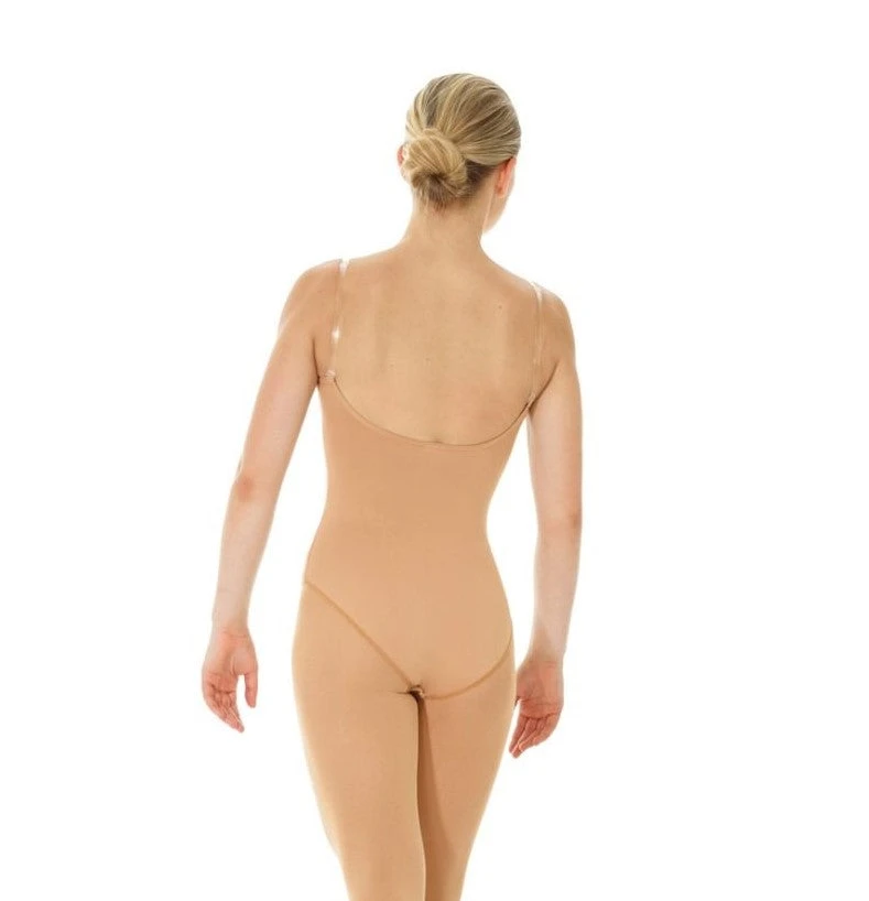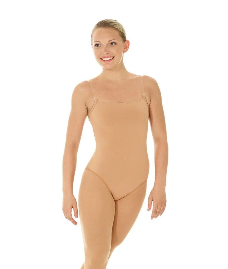Adjustable and removable clear straps, Snaps at crotch with Sorbtek® gusset, Color matches caramel tights color